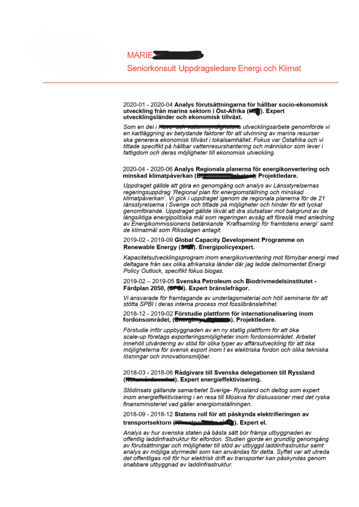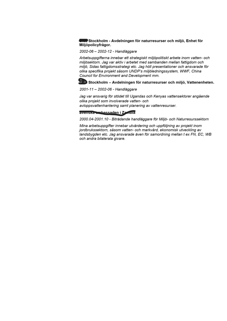 Attaching my CV as it looked when I applied, as also my competence has been questioned. I have deleated former collaboration partners as I understand that they don’t want to be connected to this stupid story. Please enjoy the Swedish version as I am tired of translating :-).
